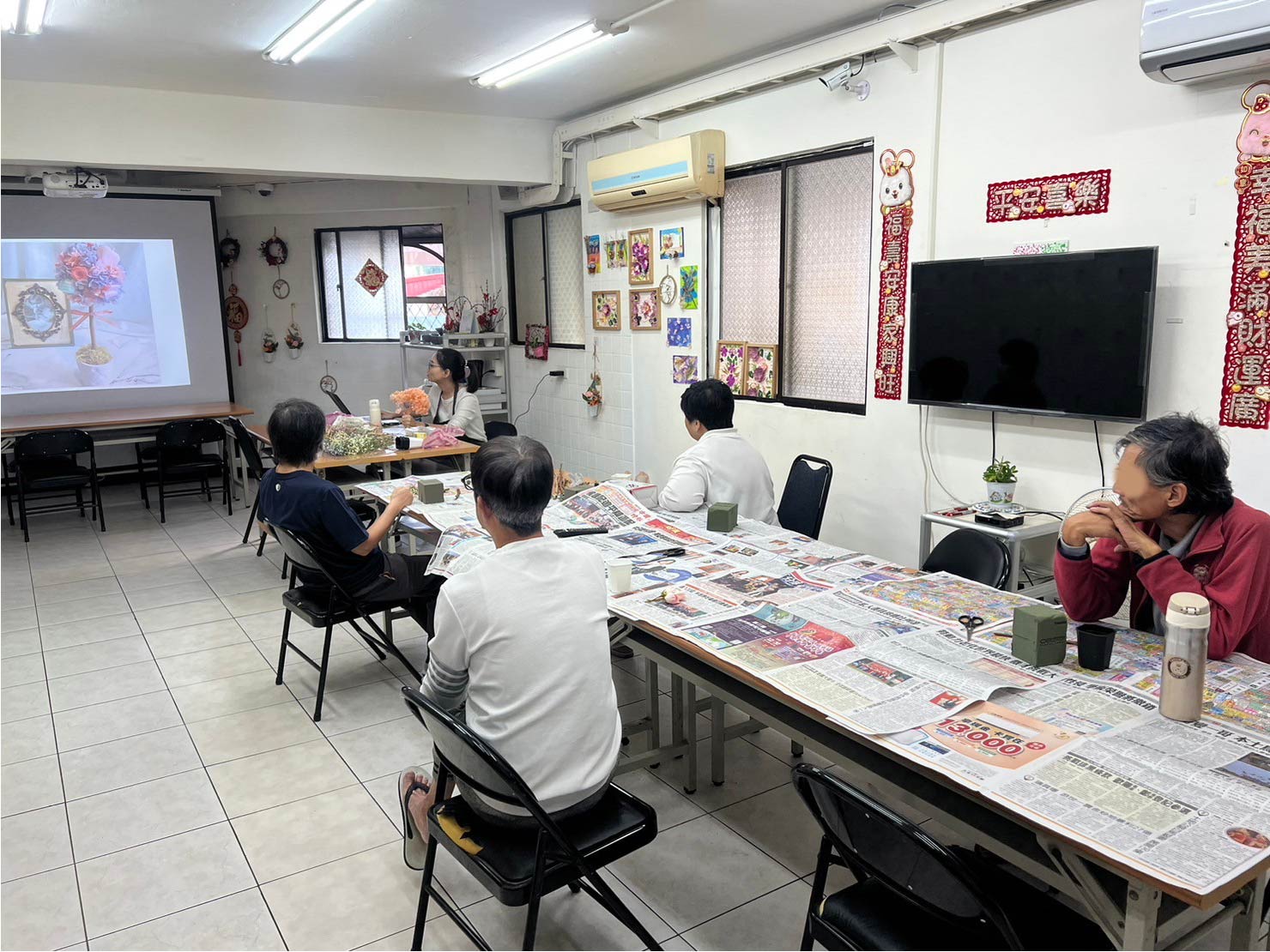 鄰近年底,樂知請園藝治療講師帶領大哥大姊做手工藝