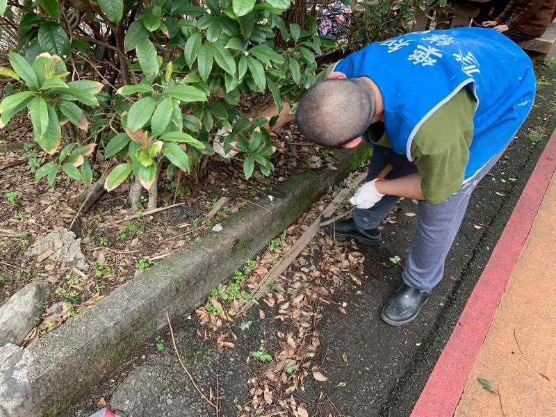 「沒關係」阿雄彎著腰,一把一把抓起落葉。樂知修繕隊員總會有辦法,用鐮刀、用鏟子...加上雙手給力,環境還是可以整理的乾乾淨淨。