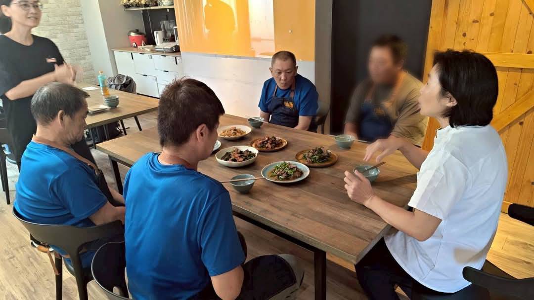 從洗菜、備菜等細節開始,到調味、翻炒、裝盤,穩穩地執行每一個節奏,幫助他們掌握實務技能,課後欣翠老師一一評價,給予建議與鼓勵,更增強了學員的自信心與歸屬感。