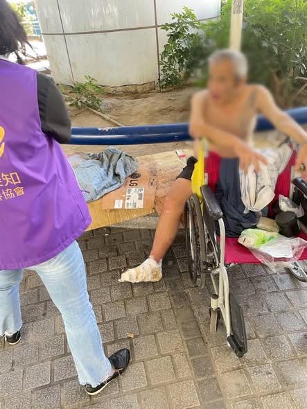 「這幾天都接到通報,流浪人的環境實在太嚴峻,大熱天的,若有傷口,生存更是難上加難...」社工擦乾額頭上的汗,連忙喝了一大杯水。
