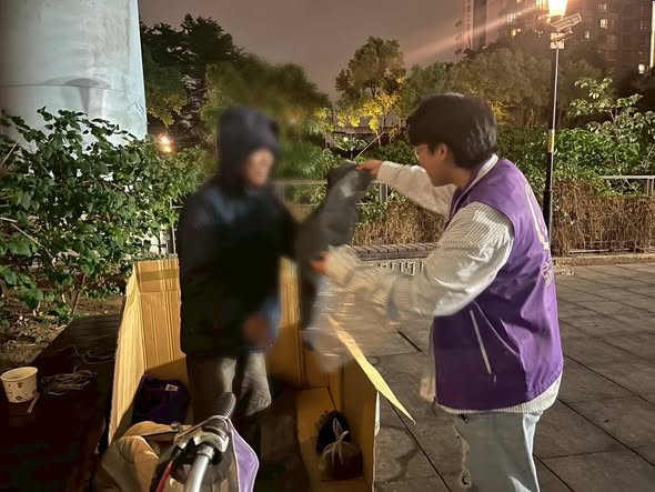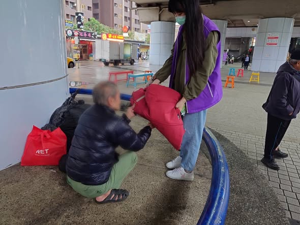 依照路線打包睡袋和冬季背心,社工群分別在板橋、中和、汐止等地,一步一步找到或熟悉或陌生的流浪人,雖然僅是短暫的陪伴,但仔細聆聽他們的需求,提供情緒支持與資源導入,都能切切改善街頭的生活。